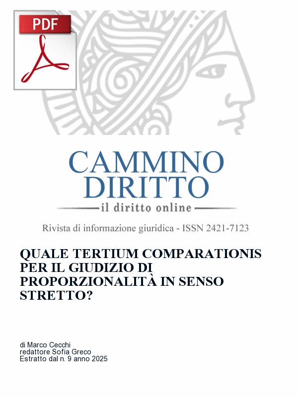 The paper represents the text of report given by the Author within the workshop “Reasonableness, proportionality and rights”, organized by SIFD (Italian Society of Philosophy of Law), as part of the 34th SIFD Congress – Law, vulnerability, equality, held in Modena, September 11-13, 2025.Sommario: 1. Ouverture; 2. Definizione concettuale; 3. Declinazione pratica del principio de quo; 4. Il nodo del tertium comparationis nel giudizio di proporzionalità in senso stretto; 5. Circoscrivere l’individuazione di fattispecie da comparare/bilanciare; 6. Ricadute.