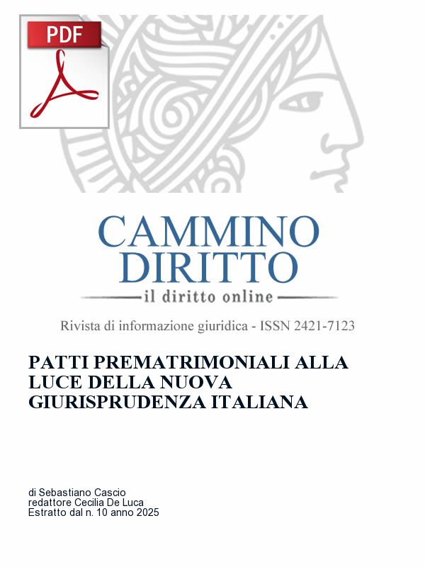Negli ordinamenti di common law i prenuptial agreements sono da lungo tempo riconosciuti come strumenti di autodeterminazione patrimoniale dei futuri coniugi; in Italia, al contrario, la dottrina e la giurisprudenza tradizionali hanno generalmente escluso la validità dei patti stipulati prima del matrimonio volti a disciplinare anticipatamente effetti patrimoniali in caso di separazione o divorzio, ritenendoli contrari all’art. 160 c.c. per violazione dell’ordine pubblico familiare. Tuttavia, con l’ordinanza della Corte di Cassazione n. 20415 del 21 luglio 2025 emerge una svolta: la Corte riconosce che accordi patrimoniali stipulati anche prima della crisi coniugale, purché rispondenti a determinati requisiti, possono essere efficaci. Il presente articolo analizza il profilo normativo, le