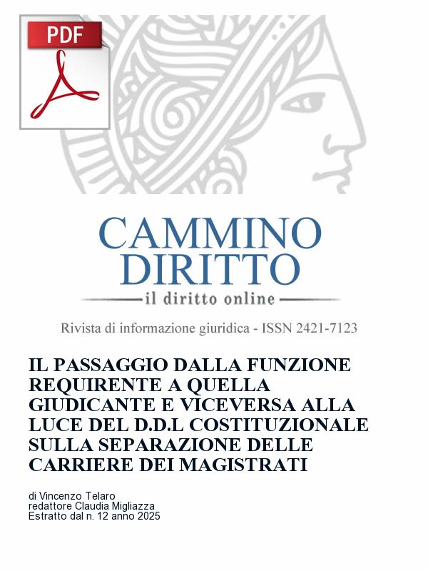La questione è di notevole importanza, soprattutto per i magistrati di recente nomina, perché, una volta operata la scelta di una funzione, magari perché “costretti” ad accettare un ruolo poiché collocati negli ultimi posti della graduatoria, rischierebbero di non poter più cambiare ruolo per tutto l’arco temporale della carriera. Il rischio, tra l’altro, è quasi realtà, in quanto il disegno di legge costituzionale in questione è già stato approvato in seconda deliberazione alla Camera dei Deputati, il 18 settembre 2025, e in prima deliberazione al Senato della Repubblica, in data 22 luglio 2025. Di conseguenza, in base al procedimento di revisione costituzionale disciplinato dall’art. 138 della Costituzione, risulterà sufficiente un’ulteriore espressione sul testo normativo da parte del Senato, a cui potrà eventualmente seguire il previsto referendum[3].