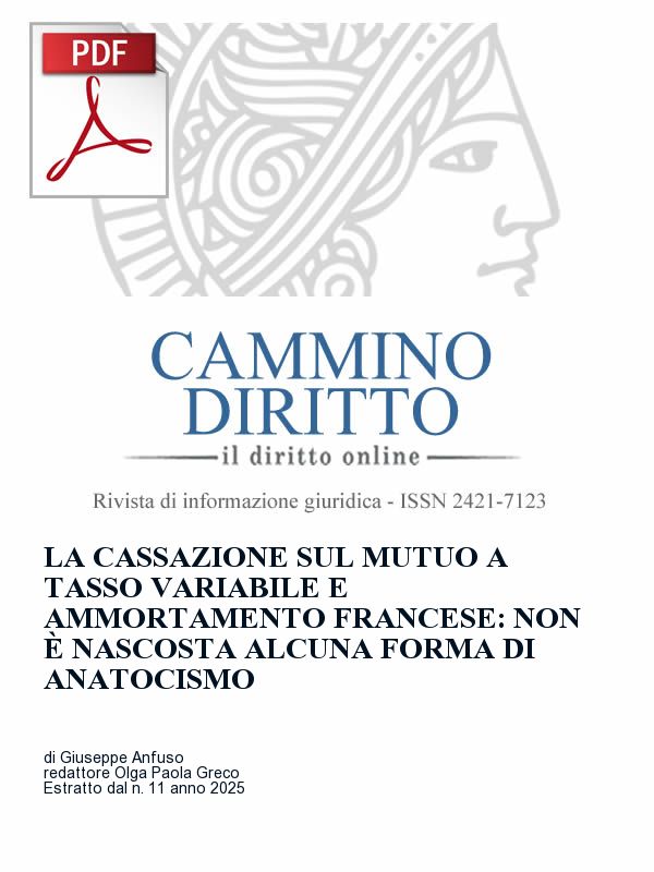 The ruling reiterates that appeals must specifically and concretely challenge the first-instance findings, in line with Article 342 of the Italian Code of Civil Procedure. Substantively, it confirms that the French amortization method—even with variable rates—does not entail compound interest: the greater interest burden follows from the repayment structure rather than from compound capitalization.Sommario: 1. Introduzione; 2. I fatti di causa e la decisione della Corte d’Appello; 3. Le ragioni della decisione della Cassazione; 3.1. Primo motivo – inammissibilità per difetto di specificità; 3.2. Secondo motivo – ammortamento alla francese e anatocismo; 3.3. Terzo motivo – usurarietà dei tassi di interesse; 4. Profili di diritto sostanziale; 4.1. Il piano di ammortamento alla francese; 4.2. La disciplina antiusura nei contratti di mutuo; 4.3. Trasparenza bancaria; 5. Profili di diritto processuale; 5.1. La specificità dei motivi ex art. 342 c.p.c.; 5.2. Autosufficienza del ricorso per cassazione; 6. Considerazioni conclusive.