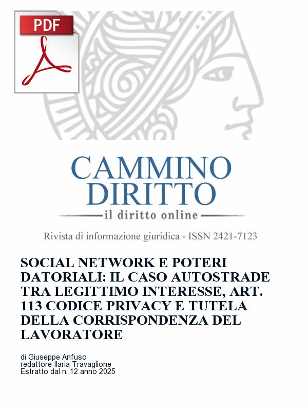 Social network e poteri datoriali: il caso Autostrade tra legittimo interesse, art. 113 Codice privacy e tutela della corrispondenza del lavoratore