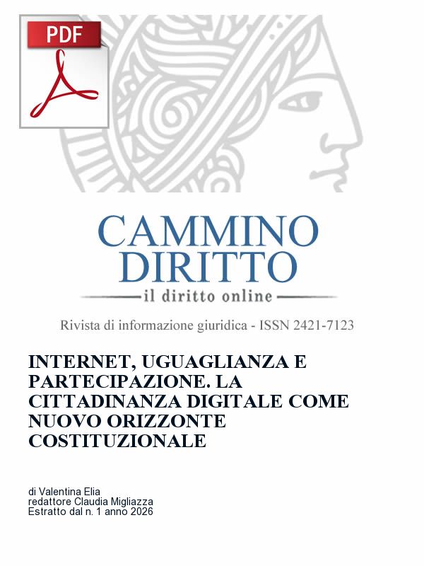 Sommario: 1. Introduzione; 2. L'accesso a Internet tra eguaglianza sostanziale e diritti sociali; 3. Internet come spazio pubblico costituzionale e ruolo delle piattaforme; 4. Cittadinanza digitale, autodeterminazione informativa e potere algoritmico; 5. Partecipazione, responsabilità comunicative e qualità democratica; 6. Conclusioni.