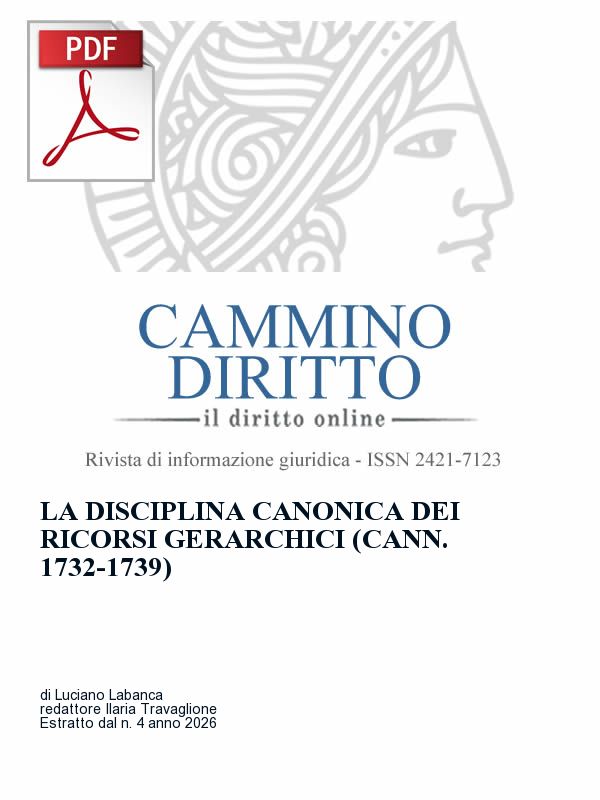 Il presente studio analizza la disciplina dei ricorsi gerarchici prevista dai cann. 1732–1739 del Codice di diritto canonico, collocandola nel più ampio contesto della potestà esecutiva di governo e del sistema degli atti amministrativi singolari. Dopo aver richiamato i principi generali che regolano l’esercizio della potestà amministrativa nella Chiesa, verranno esaminati l’ambito di applicazione dei ricorsi, le procedure previste dal diritto e le possibili decisioni dell’autorità superiore. L’obiettivo è mettere in luce la funzione dei ricorsi gerarchici come strumento di garanzia giuridica e di buona amministrazione nella vita della Chiesa.